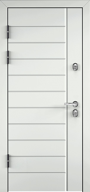 Эта белоснежная входная дверь с линиями №30 станет стильным и надежным элементом для любого интерьера. Благодаря отделке из панелей МДФ с ПВХ-покрытием, дверь выглядит элегантно и обладает высокой устойчивостью к внешним повреждениям. Внешний вид дверного полотна дополнен утонченными линиями, что придает ей современный, лаконичный вид. Прочный каркас из профильных труб 50х25 мм и лист металла толщиной 2 мм обеспечивают отличную защиту и долгий срок службы. Два контура резинового уплотнителя эффективно защищают от шума и холода, создавая комфорт в помещении. Замки Просам и Мосрентген с тремя ригелями гарантируют надежную безопасность. Дополнительно можно заказать зеркала, стеклопакеты и кованые элементы, что делает дверь универсальной для разных дизайнерских решений. Квартирная дверь входная белоснежного цвета с линиями №30 от производителя: быстрое изготовление и монтаж в Воскресенске, индивидуальные размеры, широкий выбор материалов и фурнитуры, официальная гарантия до 10 лет.