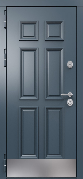 Дверь стальная МДФ эмаль №563 — это удачное сочетание надежной металлической основы и аккуратной декоративной отделки. Каркас из профильной трубы и стальной лист толщиной 2 мм обеспечивают прочность и устойчивость к взлому, а ребра жесткости повышают общий ресурс эксплуатации. Важной особенностью модели является наличие терморазрыва в коробке и полотне: конструкция эффективно препятствует промерзанию зимой, исключает появление конденсата и сохраняет тепло в помещении. Панели МДФ с ПВХ-покрытием, использованные с обеих сторон, защищены от влаги и мелких механических повреждений, благодаря чему дверь долго сохраняет привлекательный внешний вид. Два контура резинового уплотнителя дополнительно усиливают защиту от сквозняков и уличного шума. Такая дверь органично подходит для частных домов, квартир и офисов, сочетая в себе надежность стали и практичность современной отделки. Дверь стальная МДФ эмаль №563 от производителя: быстрое изготовление и монтаж в Воскресенске, индивидуальные размеры, широкий выбор материалов и фурнитуры, официальная гарантия до 10 лет.