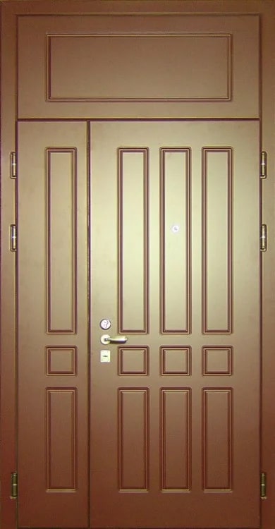 Полуторная входная дверь с верхней фрамугой №2 — это оптимальное решение для тех, кто ищет функциональность и эстетичность в одном продукте. Она отличается стильной отделкой из МДФ, которая устойчива к механическим повреждениям и сохраняет свой внешний вид на долгие годы. Конструкция двери включает прочный каркас из профильной трубы 50х25 мм и металл толщиной 2 мм, что обеспечивает высокую надежность. Наличие верхней фрамуги придает двери визуальную легкость и позволяет пропускать больше света, создавая уют в прихожей. Замки от надежных производителей, таких как Просам и Мосрентген, с тремя ригелями гарантируют высокий уровень безопасности. Для дополнительной кастомизации можно добавить стеклопакет, зеркало или кованые элементы, а также установить видеодомофон для контроля доступа. Полуторная входная дверь с верхней фрамугой №2 от производителя: быстрое изготовление и монтаж в Воскресенске, индивидуальные размеры, широкий выбор материалов и фурнитуры, официальная гарантия до 10 лет.