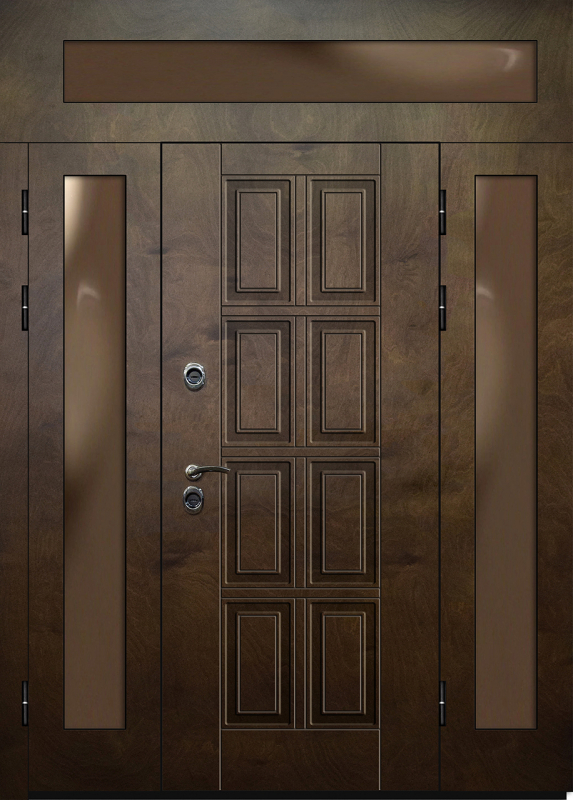 Входная дверь эконом класса с фрамугой №11 сочетает в себе надежность и доступность. Такая дверь прекрасно подходит для установки в местах с умеренной нагрузкой, обеспечивая необходимую защиту и эстетичный внешний вид. Внешняя и внутренняя отделка из МДФ с ПВХ-покрытием обладает хорошей устойчивостью к механическим повреждениям, а также отличается долговечностью. Конструкция из профильной трубы 50х25 мм и металлического листа толщиной 2 мм делает дверь прочной и устойчивой к нагрузкам. Дополнительные ребра жесткости усиливают ее стойкость. Резиновый уплотнитель с двумя контурами гарантирует защиту от холода и пыли, однако, для повышения шумо- и теплоизоляции можно заказать дополнительные опции. Эта модель — идеальный выбор для тех, кто ищет сбалансированное решение по разумной цене. Входная дверь эконом класса с фрамугой №11 от производителя: быстрое изготовление и монтаж в Воскресенске, индивидуальные размеры, широкий выбор материалов и фурнитуры, официальная гарантия до 10 лет.