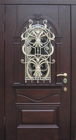 Красивая шпонированная дверь с надежной фурнитурой и ковкой "лоза" №33