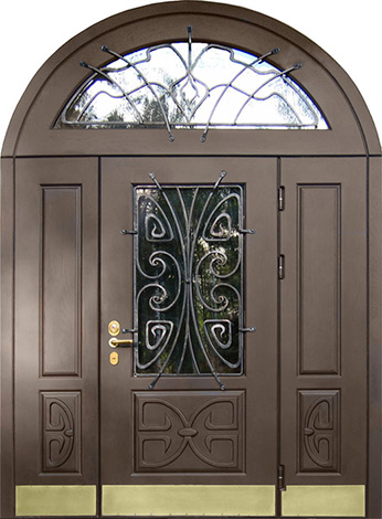 Входная металлическая дверь для частного дома со стеклом и ковкой №29