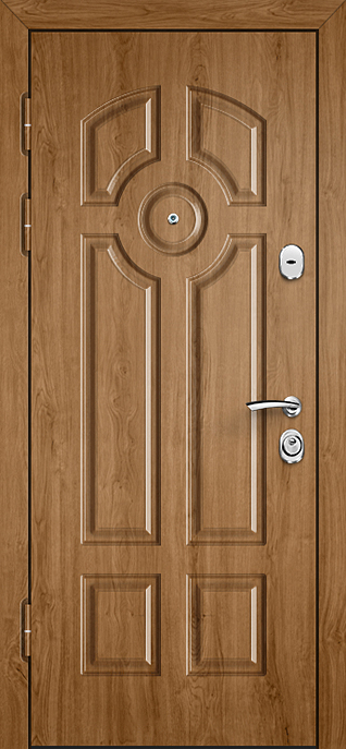Филёнчатая отделка всегда придаёт дверному полотну особый шарм, создавая эффект глубины и аккуратного рельефа. Входная дверь МДФ с внешней панелью под филёнку №537 универсальна и одинаково хорошо смотрится на фасаде частного дома, в офисе или в квартире. Отделка из МДФ-плиты устойчива к мелким повреждениям, не выгорает и сохраняет аккуратный вид при ежедневной эксплуатации, а при необходимости легко комбинируется с другими декоративными элементами. В основе конструкции — каркас из профильной трубы, лист стали толщиной 2 мм и рёбра жёсткости, обеспечивающие надёжность и жёсткость всей системы. Для удобства и безопасности предусмотрены два замка: сувальдный Просам и цилиндровый Мосрентген. Два контура уплотнения повышают комфорт эксплуатации, а при желании дверь можно дополнить зеркалом, стеклопакетом или коваными вставками, сделав её не только прочной, но и выразительной частью интерьера. Входная дверь МДФ и внешней панелью под филенку №537 от производителя: быстрое изготовление и монтаж в Воскресенске, индивидуальные размеры, широкий выбор материалов и фурнитуры, официальная гарантия до 10 лет.