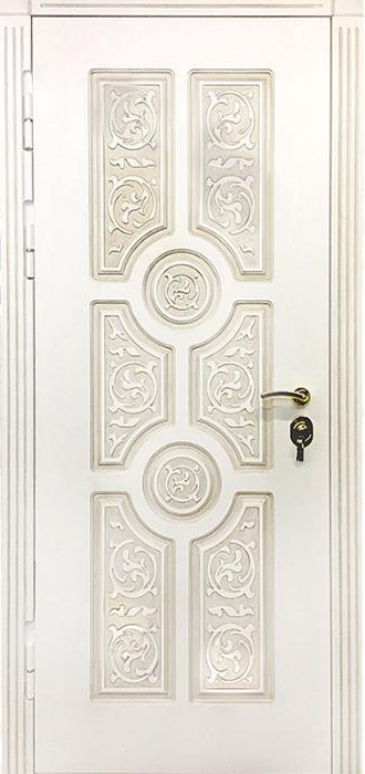 Дверь уличная с терморазрывом №49 — это надежное решение для частных домов и коттеджей, которое обеспечит комфорт и защиту от внешних факторов. С терморазрывом в коробке и полотне, эта дверь исключает проникновение холода, сохраняя тепло в доме и предотвращая появление конденсата. Внешняя и внутренняя отделка выполнена с использованием накладки МДФ, что придает двери привлекательный вид и долговечность, стойкость к механическим повреждениям и атмосферным воздействиям. Ковка, как элемент декора, добавляет изысканности и подчеркивает индивидуальность. Металлическая конструкция с толщиной полотна 1,5 мм и каркасом из профильных труб гарантирует прочность и устойчивость. Уплотнение с тремя контурами магнитного герметика и высокая шумо- и теплоизоляция на основе пенопласта делают дверь идеальной для использования в уличных условиях. Возможность замены замков и добавления стеклопакетов или кованых элементов позволяет индивидуализировать дверное решение под любые потребности. Дверь уличная с терморазрывом №49 от производителя: быстрое изготовление и монтаж в Воскресенске, индивидуальные размеры, широкий выбор материалов и фурнитуры, официальная гарантия до 10 лет.