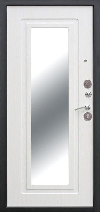 Надёжность металлической двери всегда в приоритете, но когда она получает дополнительное оснащение, результат становится особенно удобным. Входная дверь с зеркалом №78 удачно объединяет прочность конструкции и практичность деталей: массивный каркас из профильной трубы, лист стали толщиной 2 мм и усиленные рёбра жёсткости формируют крепкий защитный барьер, а зеркало на внутренней стороне делает её частью интерьера, экономя место и добавляя визуального простора. Снаружи используется молотковое напыление, устойчивое к царапинам и погодным перепадам, благодаря чему дверь подходит как для квартиры, так и для частного дома. Внутренняя отделка выполнена плитой МДФ, которая выглядит стильно и сохраняет аккуратность даже при активной эксплуатации. Два контура уплотнения помогают защитить помещение от сквозняков, а при необходимости конструкцию можно дополнить шумоизоляцией, современными замками и даже видеодомофоном. Входная дверь с зеркалом №78 от производителя: быстрое изготовление и монтаж в Воскресенске, индивидуальные размеры, широкий выбор материалов и фурнитуры, официальная гарантия до 10 лет.
