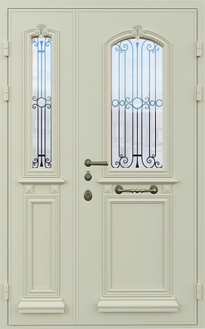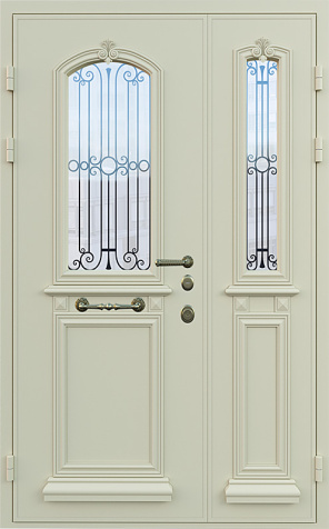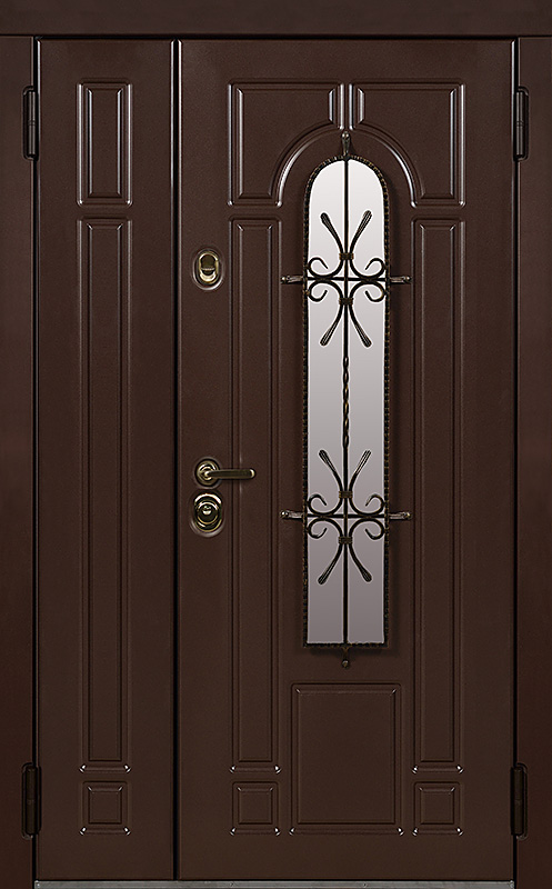 Эта металлическая двухстворчатая дверь с арочным стеклопакетом №15 представляет собой идеальный баланс между эстетикой и прочностью. Арочное стекло добавляет в её дизайн утончённость, а ковка в декоре придаёт изысканный, но в то же время крепкий и надёжный вид. Плита МДФ, используемая как для внешней, так и для внутренней отделки, не только сохраняет прекрасный внешний вид, но и устойчива к механическим повреждениям. Металлическая двухстворчатая дверь с арочным стеклопакетом №15 от производителя: быстрое изготовление и монтаж в Воскресенске, индивидуальные размеры, широкий выбор материалов и фурнитуры, официальная гарантия до 10 лет.