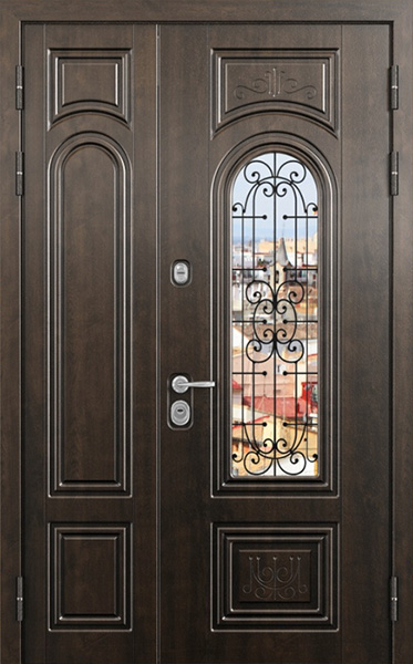 Двупольная стальная дверь со стеклопакетом и кованым узором №24 станет отличным выбором для тех, кто ценит не только безопасность, но и стиль. Внешняя и внутренняя отделка выполнены из МДФ, что придает двери элегантный и современный вид, а также обеспечивает высокую устойчивость к механическим повреждениям и износу. Стеклопакет и кованые элементы добавляют изысканности и уникальности, при этом сохраняя прочность конструкции. Двупольная стальная дверь со стеклопакетом и кованым узором №24 от производителя: быстрое изготовление и монтаж в Воскресенске, индивидуальные размеры, широкий выбор материалов и фурнитуры, официальная гарантия до 10 лет.
