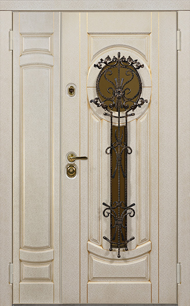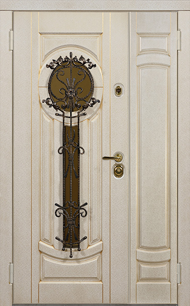 Двухстворчатая парадная дверь с ковкой и стеклом белая №30 — это сочетание красоты и надёжности. Конструкция из профильной трубы 50х25 мм и металлического листа толщиной 2 мм обеспечивает долговечность и стойкость к внешним воздействиям. Элементы ковки придают двери изысканный вид, а стеклопакет позволяет создать атмосферу лёгкости и прозрачности. Внешняя и внутренняя отделка выполнены из плиты МДФ, что делает дверь не только привлекательной, но и устойчивой к механическим повреждениям. Для дополнительной герметичности используются уплотнители с двумя контурами, а блокираторы обеспечат безопасность. Вариативность размеров и возможность добавления дополнительных опций, таких как шумо- и теплоизоляция, делают эту модель универсальной для установки в любом интерьере. Двухстворчатая парадная дверь с ковкой и стеклом белая №30 от производителя: быстрое изготовление и монтаж в Воскресенске, индивидуальные размеры, широкий выбор материалов и фурнитуры, официальная гарантия до 10 лет.