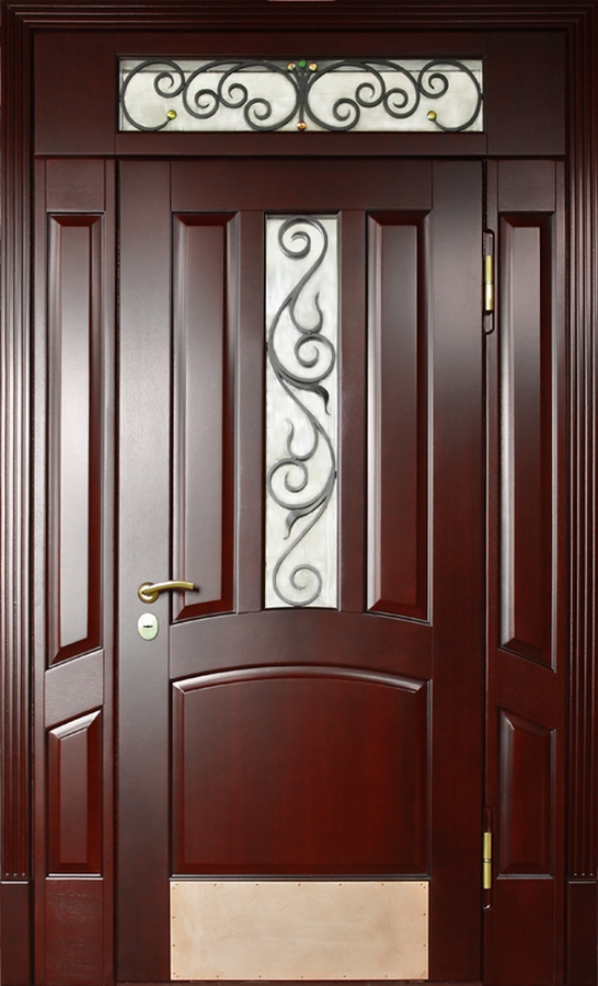 Красивая шпонированная дверь с надежной фурнитурой и ковкой "лоза" №33 идеально дополнит интерьер вашего частного дома или коттеджа. Внешняя и внутренняя отделка выполнены из натурального дерева, что придает двери элегантность и стиль. Профильная труба 50х25 мм используется для каркаса и полотна, а лист металла толщиной 2 мм и ребра жесткости из профильных труб 40х25 мм обеспечивают прочность и долговечность. Несмотря на отсутствие терморазрыва, дверь гарантирует надежную защиту и теплоизоляцию благодаря двум контурам уплотнения. Элементы ковки "лоза" придают двери особое очарование, сочетая практичность с эстетикой. Эта дверь — идеальный выбор для тех, кто ценит стиль, качество и безопасность. Красивая шпонированная дверь с надежной фурнитурой и ковкой "лоза" №33 от производителя: быстрое изготовление и монтаж в Воскресенске, индивидуальные размеры, широкий выбор материалов и фурнитуры, официальная гарантия до 10 лет.